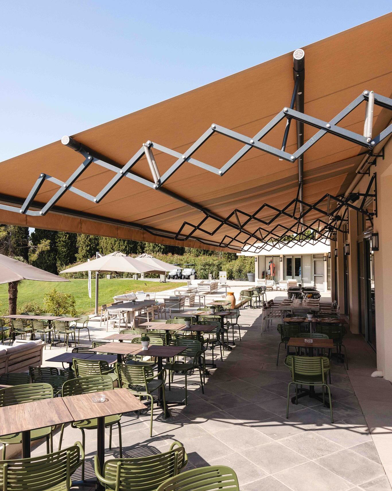 Anders dan traditionele knikarmschermen, bewegen de armen van een schaararmscherm in een verticale lijn, waardoor het doek perfect strak blijft bij elke uitrolstand. Dit zorgt niet alleen voor een aantrekkelijke uitstraling, maar verbetert ook de functionaliteit en duurzaamheid van het scherm. Schaararmschermen zijn bijzonder geschikt voor grotere terrassen, waardoor ze een populaire keuze zijn voor horecaondernemers die een ruim terras willen overkappen zonder concessies te doen aan stijl of kwaliteit.